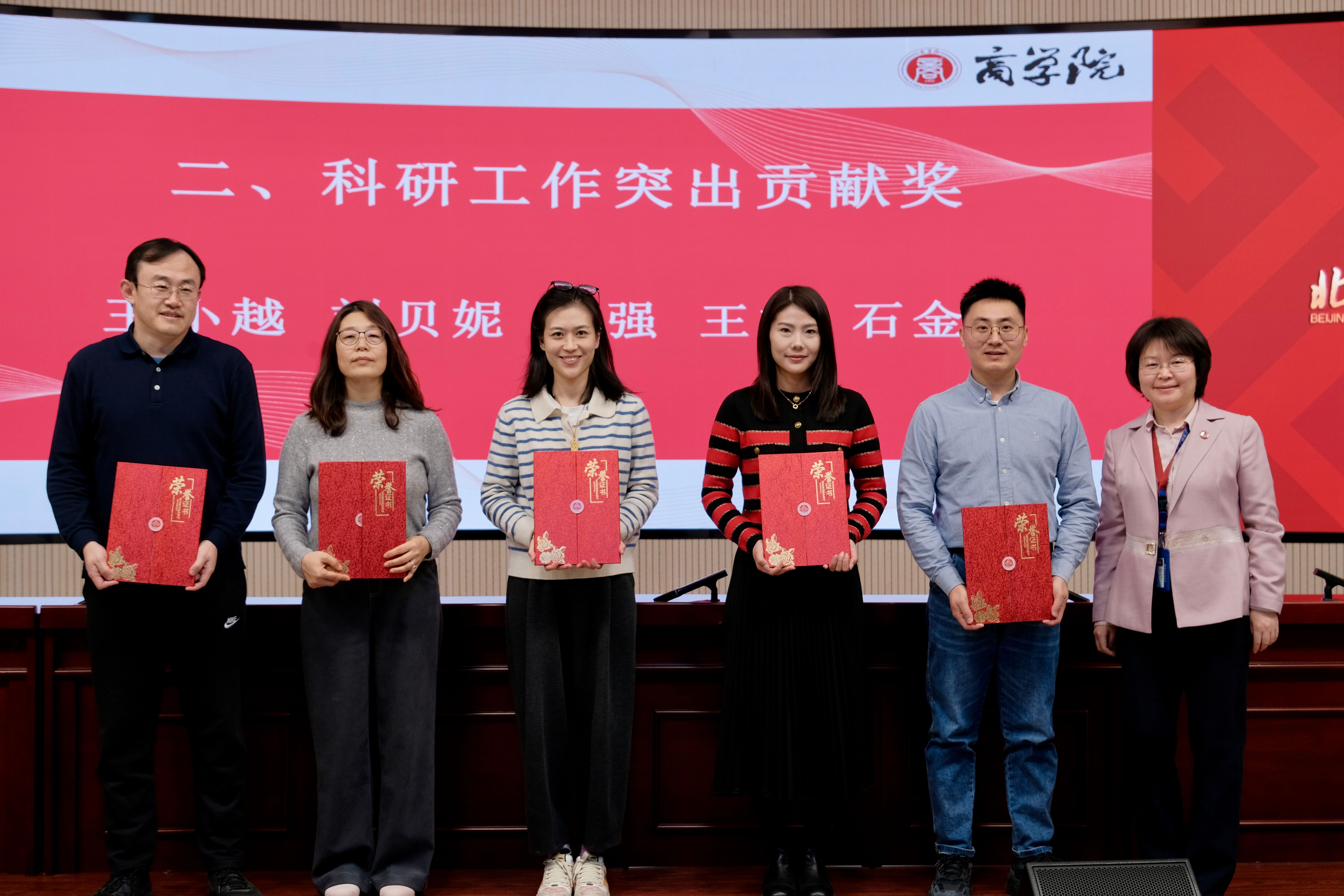随后,举行了高h小说 2024年度工作表彰颁奖,张悦主持颁奖仪式并宣读表彰名单。为表彰辛勤付出和取得突出成绩的教职工,学院从教学、科研、社会工作、学生管理等方面分别评选,并给予表彰。表彰人员包括:教学工作突出贡献奖5人、科研工作突出贡献奖5人、社会服务工作突出贡献奖5人、学科建设突出贡献奖5人、服务北京发展突出贡献奖5人、学生教育管理突出贡献奖3人、留学生教育管理和国际交流工作突出贡献奖3人、教育创新与发展突出贡献奖3人、本科教育教学审核评估突出贡献奖1集体。获奖人员一一上台领奖,院长何玉润,教务处副处长卢强、计划财务处副处长张伟华、副院长刘鸿、赵川、仇勇、许晓芳,院长助理张晨宇为大家颁奖并合影留念。在场老师用热烈的掌声对获奖人员取得的成绩表示祝贺。
