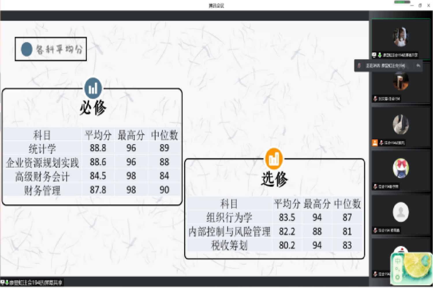 2021级主题班会侧重学习行为习惯养成,在分析学业数据的基础上通报了学生出勤情况,及时指出一些不良学习风气,教育和引导学生端正学习态度、提高自我管理能力。在班主任的引导下,鼓励每位学生发言,交流网课期间的学习情况及问题,对学业困难学生制定了科学细致的线上学业帮扶计划;班主任鼓励学生应投入更多精力到学习中,对未来发展表达了殷切希望。