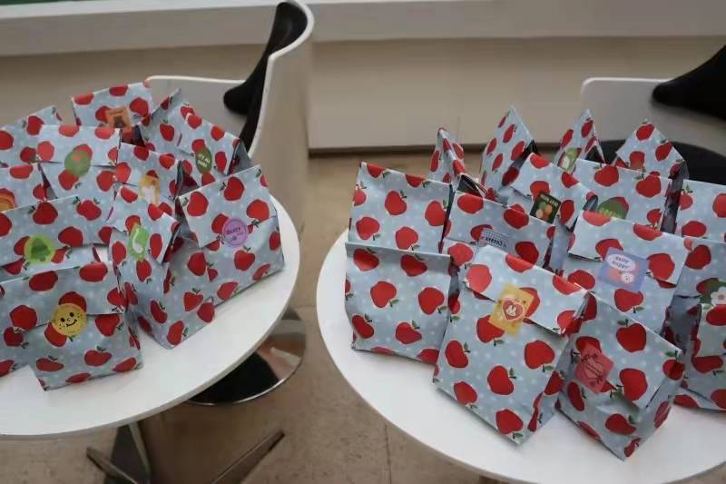 在考研学子们仍在抓紧最后的时光紧张复习之际,高h小说 心资部的同学们早早来到商楼大厅为家庭经济困难的考研学子们精心准备小礼袋。画满红苹果的蓝白相间小礼袋里装着又大又红的苹果和一张满载着祝福语的卡片。苹果有着放“苹”心态、“苹”稳上岸、一定能“果”线的寓意,寄托着学弟学妹们对考研学子的祝福;卡片上写有大家精心准备的鼓励话语,言语间希望这些考研的学长学姐们能摘取胜利的桂冠,不负过去伏案桌前、泛舟书海的自己。