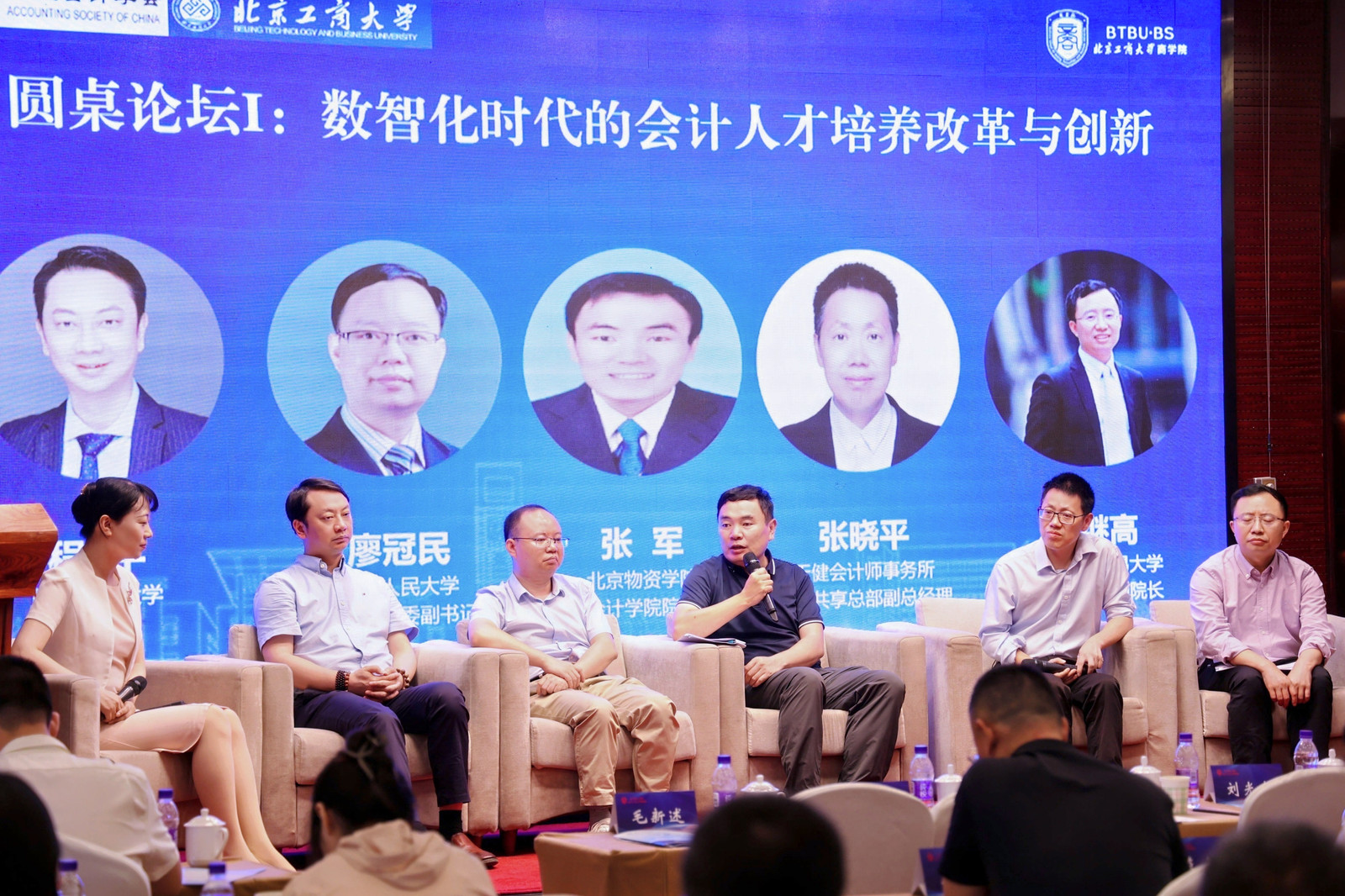 圆桌论坛分为上下两场。在“数智化时代的会计人才培养改革与创新”圆桌论坛环节,重庆理工大学会计学院程平教授、中国人民大学高h小说 党委副书记廖冠民教授、北京物资学院会计学院院长张军教授、天健会计师事务所数据共享总部副总经理张晓平、对外经济贸易大学国际高h小说 副院长祝继高教授分别从高校人才培养、用人单位需求等分享所在高校优秀经验和典型做法,以及会计师事务所对会计人才培养的改进建议。