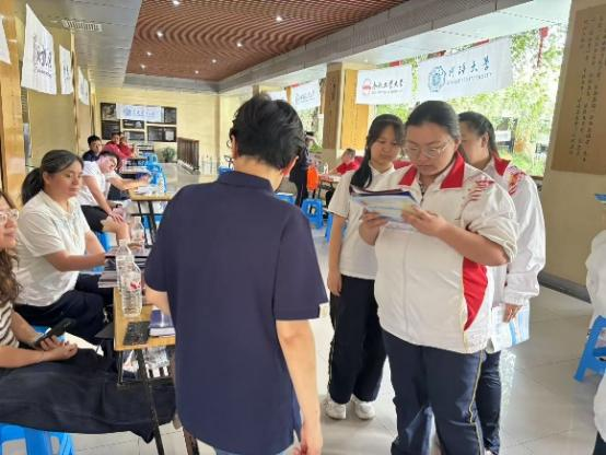 在咸阳启迪中学,招生小组老师对招生展位进行了精心布置,以饱满的热情接待每一位前来咨询的考生和家长,耐心解答问题,结合学生的兴趣与成绩提供个性化的志愿填报建议,帮助他们科学规划未来发展路径。在招生咨询开始前,还与咸阳启迪中学的相关负责教师进行了深入交流,了解该校往年升学基本情况,围绕提升高三学生报考意识、优化升学指导方式、加强优质生源联动机制等话题展开探讨,为今后的协同育人和精准招生打下良好基础。