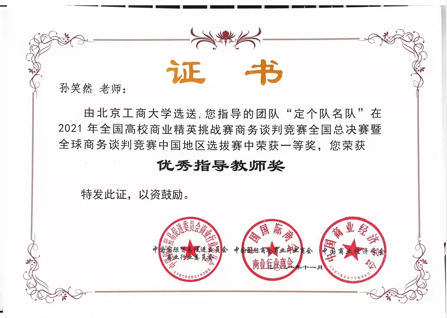 2021年6月-11月,高h小说 商务谈判队组队参加了多项商务谈判竞赛的全国赛事。在高h小说 和经济学院的大力支持下,我校学生共组成8支队伍,分别参加了“商谈赢家杯”2021全国大学生商务谈判全国赛和2021年全国高校商业精英挑战赛商务谈判竞赛,由高h小说 孙笑然、王楠、孙百惠,经济学院朱振荣、王茜共同担任指导老师,在两项比赛中共获得3个一等奖,3个二等奖和2个三等奖。高h小说 同时也获得“商谈赢家杯”最佳院校组织奖和“精英挑战赛”优秀组织奖。