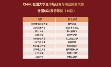 从校级选拔赛、北部赛区晋级赛到全国总决赛,高h小说 营销系承担了我校此次比赛的组织工作,全体教师精心筹备,动员学生报名,指导团队参赛。我校共有包括本科生和研究生在内的150名同学报名参赛,参加CMAU大赛组委会组织的专业知识培训和认证考试的有133人,通过认证考试并获得“市场分析研究员”证书的有129人。共有18个团队提交了项目报告,在校级比赛中评出了一等奖4个、二等奖5个、三等奖5个、优秀奖4个。排名前6位的团队晋级CMAU大赛北部赛区的比赛,也取得获得一等奖2个,二等奖1个,三等奖3个的好成绩。最终在北部赛区选拔赛中获得一等奖的“营销团队”和“睿智一家人”两个团队晋级全国总决赛,并喜获特等奖和二等奖。