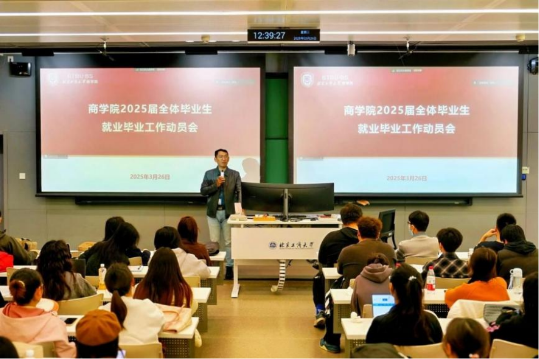 近期,高h小说 在良乡校区召开“爱商未来”高h小说 2025届毕业生就业动员会。学院党委副书记张悦、学院副院长仇勇,就业辅导员邵杰、王阔,500余名本科毕业生参加。