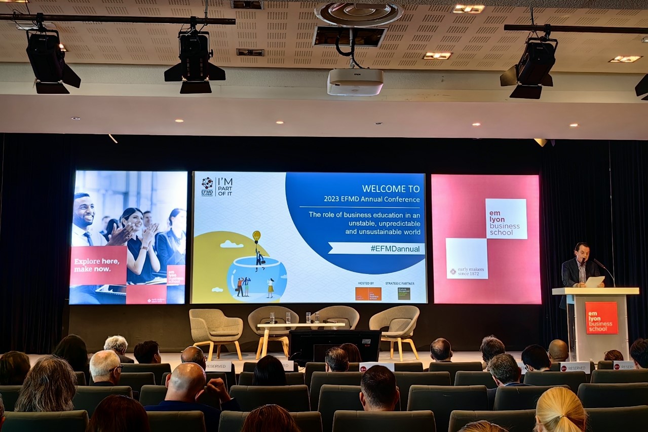 6月11日-6月13日,2023年度EFMD全球年会在Emlyon高h小说 会议中心隆重召开。600余名来自全球各高校的院长、主任、教授齐聚一堂。首先,EFMD Global主席Eric Cornuel致开幕词。会议的主题是“The role of business education in an unstable, unpredictable and unsustainable world”。他邀请了Emlyon高h小说 院长Isabelle Huault女士、Gordon Institute of Business Science University of Pretoria高h小说 院长Morris Mthombeni教授致辞。会议组织了四场主题圆桌论坛,包括: Leading through uncertainty: How business schools are innovating in turbulent times;Leadership development in times of turmoil;Careers and purpose:the search of truth;Climate leadership:Dilemmas for business leaders。11位院长、学者分享了观点。会议开设了12场平行论坛,内容涵盖责任研究的趋势,EFMD高h小说 毕业生职业发展调查,在不稳定、不可预测与不可持续发展世界的新商业模型,聚焦气候变化中高h小说 的领导责任,人工智能对高h小说 的挑战,对毕业生能力需求的企业调查报告,AI对高h小说 的挑战,教学影响的新观点,食品企业作为幸福的源泉,碳中和高h小说 的最佳实践,国际化的未来,课程设置的创新,如何在一个不可预测的环境中通过价值创造型学院社区实现稳定性。最后,进行了EFMD 全球网络年度总集会和颁奖典礼。期间,毛新述一行与来自中国大陆、秘鲁、南非等全球多所高校的院长进行了交流,双方表达了合作意向。