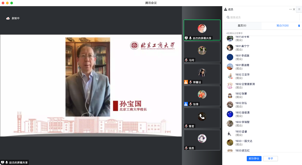 孙宝国校长在授课中就学校最近的防疫工作和要求向同学们进行通报。他指出学校做好应急准备,提升应急能力;加强服务保障,确保运转有序;引导同学们积极响应号召,参与支持疫情防控。他对全体学生提出了四点希望:希望同学们快乐学习健康生活,服务国家奉献社会;希望同学们从容、乐观地应对疫情给学习、生活带来的影响,理解和信任政府和学校的防疫措施,认真完成线上学习,努力做好求职准备,用积极的态度面对困难挑战,用严格自律来谱写美好人生;希望同学们始终保持当代青年的家国情怀与使命担当,将个人青春融入时代浪潮,做好自身防护、积极参与志愿服务,作出力所能及的贡献;希望同学们时刻绷紧疫情防控这根弦,科学防疫、树立信心,少外出、不聚集,度过一个安全祥和的假期,配合学校、配合属地,为打好、打赢疫情防控这场没有硝烟的战争做出自己的贡献。孙校长表示,疫情是块“磨刀石”,越是重要关口越见精神品质,越是关键时刻越看担当作为。他勉励北工商学子要担得起责任、经受住考验,坚定生命至上、健康第一的原则,积极配合疫情防控,将“小我”融入“大我”,展现青年一代的责任与担当。