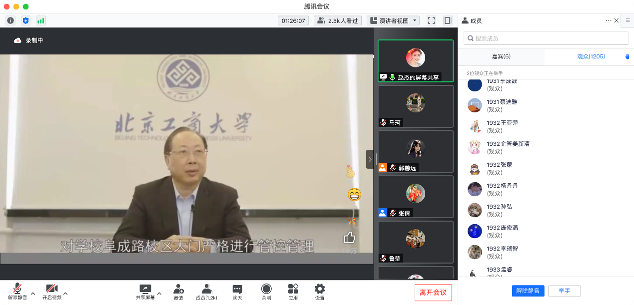 “目前校内一切正常,同学们请安心学习,让我们共同抗疫。”书记和校长的话语温柔而有力,不仅为同学们讲述了在校师生抗疫一线的情况,也结合全市疫情数据说明了近期阜成路校区周边的疫情严峻程度,更说明了国内疫情防控“动态清零”的重要性,表达了对待疫情发展情况的正确认识和看法。书记和校长大思政课介绍了学校始终将保障师生安全放在第一位的理念以及为抗击疫情做出的努力,表达了对待疫情发展情况的正确认识和看法,更是对同学们提出了在家、在校都要齐心协力,努力学习的教诲。
