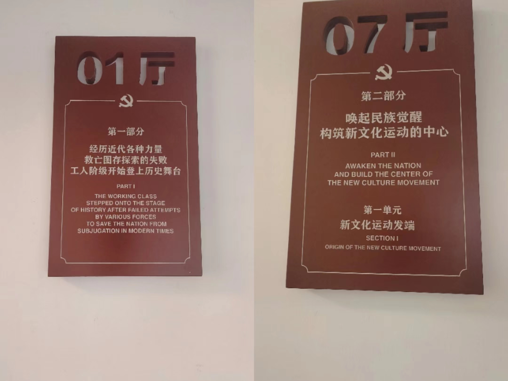 从红楼中门进入,“光辉伟业 红色序章——北大红楼与中国共产党早期北京革命活动主题展”的标题映入眼帘。据中国共产党早期北京革命活动纪念馆馆长杨家毅介绍,这个主题展是纪念馆的常设展览。展览分为“经历近代各种力量救亡图存探索的失败 工人阶级开始登上历史舞台”“唤起民族觉醒 构筑新文化运动的中心”“高举爱国旗帜 形成五四运动的策源地”“播撒革命火种 打造马克思主义在中国早期传播的主阵地”“酝酿和筹建中国共产党 铸就党的主要孕育地之一”“不忘初心 牢记使命”6部分,958张图片、1357件文物、40件艺术品分布在各个展室,描绘出一幅幅波澜壮阔的历史画卷。