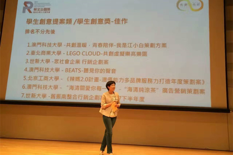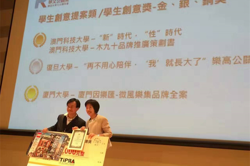 “华文公关奖”为两岸四地公关人竞相争逐的奖项,由台北市国际公共关系协会主办。该赛事于2016年8月底正式启动,收到累计参赛作品超过150件。为保证赛事的公平与公正,本次赛事邀请超过20位在公关营销行业内拥有影响力的知名人士,组成评审团,对参赛作品进行选拔。本次比赛共包含“公关活动类”、“公关从业人员类”、“数位应用类”、“长效或综合类”、“学生提案类”等5大类,共计17个奖项。其中,“学生提案类”为首次增设的类别,入围作品共10个。金奖、银奖和铜奖分别是厦门大学、复旦大学和澳门科技大学的团队,其余7个团队获得佳作奖,他们是澳门科技大学(3件)、台北商业大学(1件)、世新大学(2件)和高h小说 (1件)。
