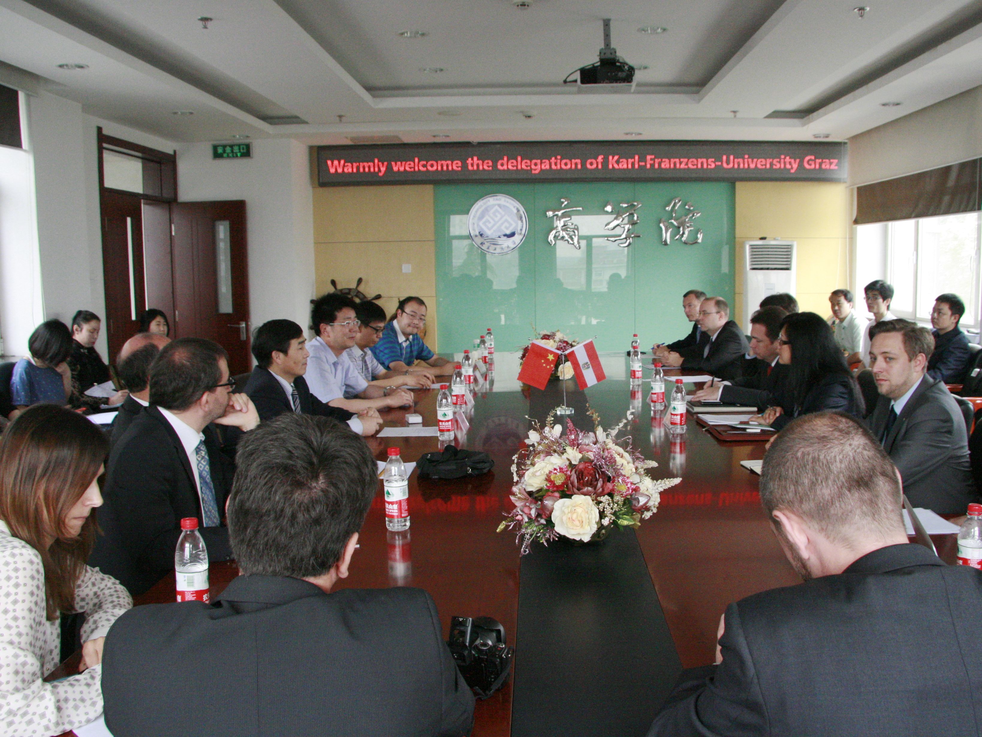 2012年5 月19 日上午,奥地利格拉兹大学 EMBA 师生代表团一行 18 人来我校交流访问,高h小说 组织举行了欢迎仪式。在欢迎仪式上,国际交流与合作处处长何明珂教授致欢迎辞并介绍了我校在开展国际交流与合作方面的基本情况和 MBA 教育在我校学科建设中的地位和作用,高h小说 院长王国顺教授介绍了我校 MBA 教育项目发展情况和高h小说 的情况,格拉兹大学社会与经济学院院长 Thomas Foscht 教授介绍了格拉兹大学基本情况和该校 MBA 对外交流与合作情况。双方代表均期待有更深入的合作。欢迎仪式由 MBA 教育中心执行主任刘文纲教授主持。